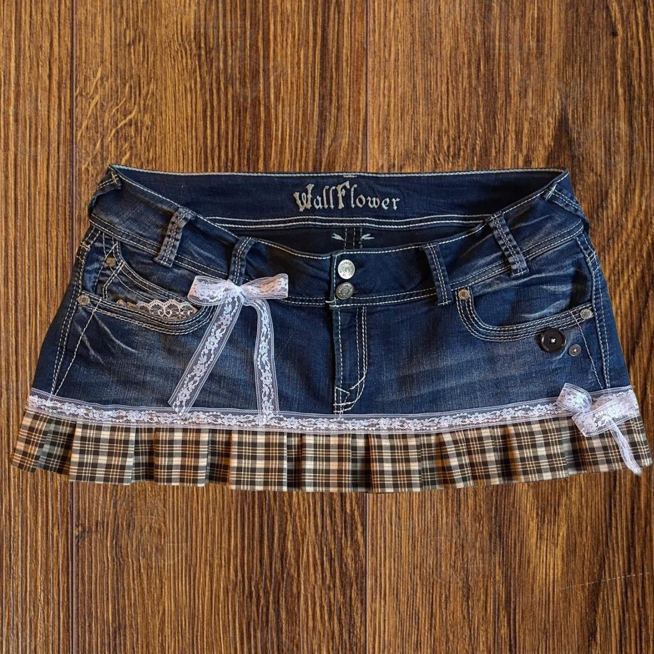 ୨୧ reworked OOAK vintage 70s brooklyn baby princess micro mini denim skirt with trim, lace and bows
