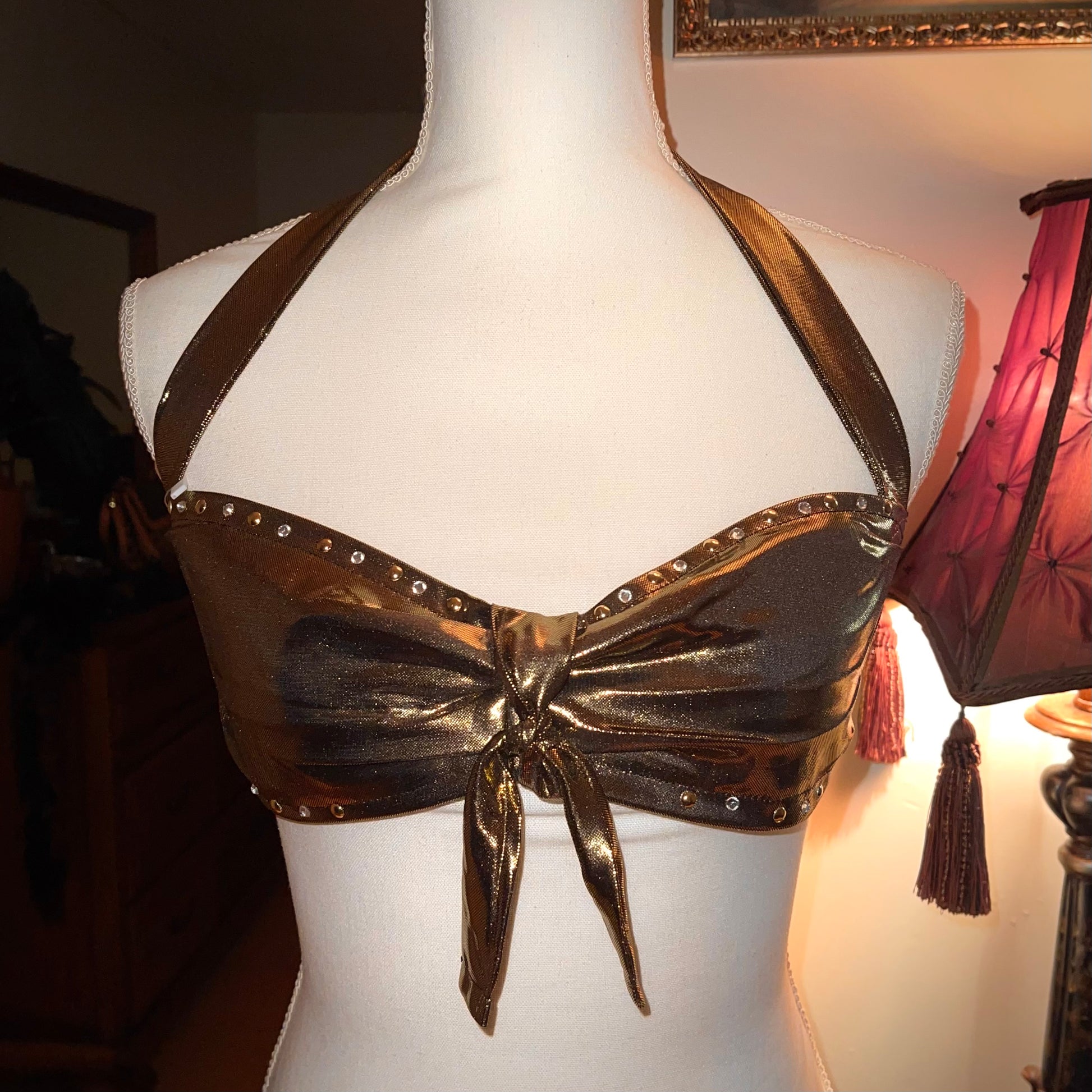 “Divalicious” Rhinestone Bralette in Gold